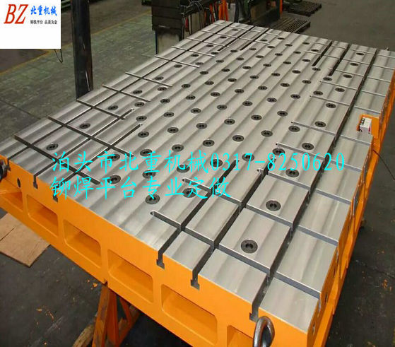 鑄鐵鉚焊平臺是鉚焊工作的基礎(chǔ)工作臺.北重T型槽鉚焊平臺為了滿足鉚焊工藝需求,鑄鐵工作臺面加工縱向或橫向T型槽,適當位置加工圓孔,大型鉚焊平臺采用HT200-300灰鐵鑄造而成.鉚焊平板臺面經(jīng)過人工刮研處理,在鉚焊工作中其作用不容小視.使用鉚焊平臺運用到工作中,可提高工作效率增強產(chǎn)品質(zhì)量.